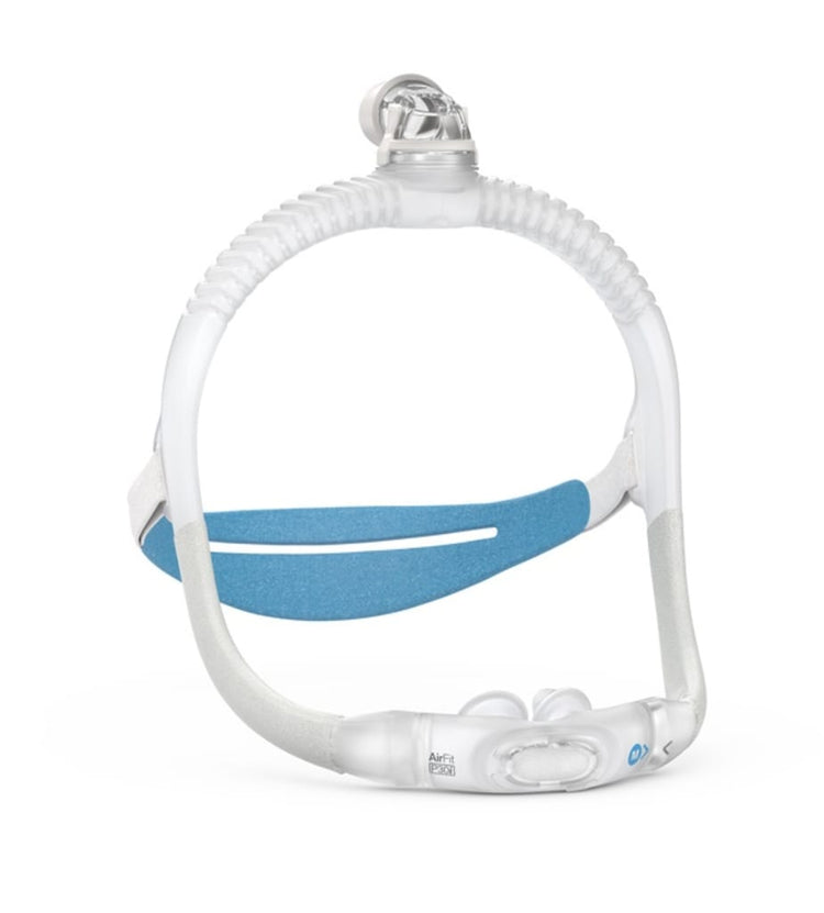 AirFit™ P30i is designed to feel more natural, with a top-of-the-head tube design that keeps tubing out of the way and gives you the freedom to sleep in many positions. It also features ResMed's QuietAir™ vent technology that gently diffuses exhaled air to minimise noise and disturbance, designed to allow patients to sleep closer to their bed partner.